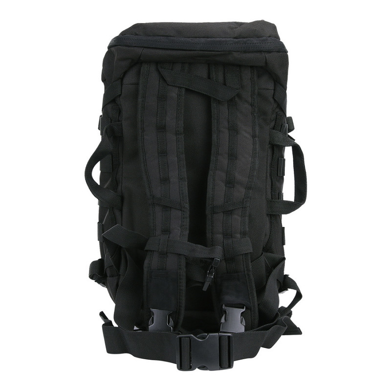 This backpack has extra storage compartments on the side with Molle and a extra compartment on top with draw string.