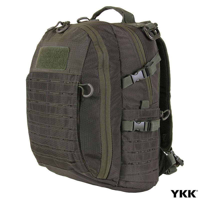 The backpack is equipped with lasercut MOLLE loops on all sides, so you can add additional compatible MOLLE pouches on it. Further more, in the inside of the backpack you will find several practical storage pockets for daily usage.