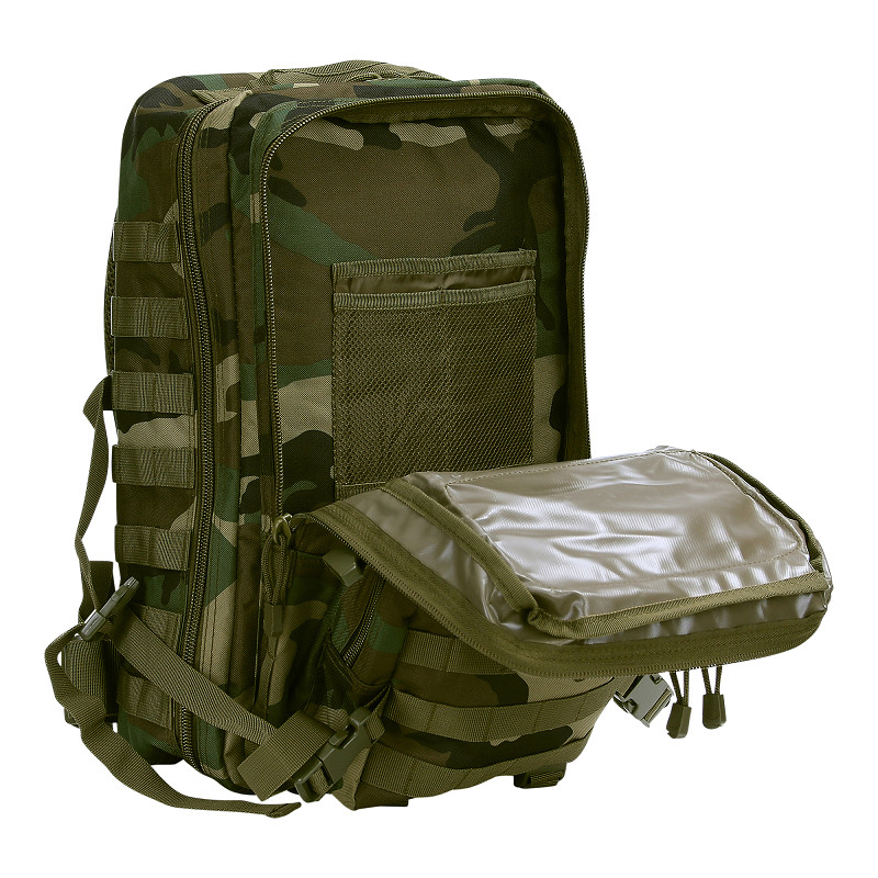 Provided with Molle on the front and side. The total volume of the backpack is 45 liters.