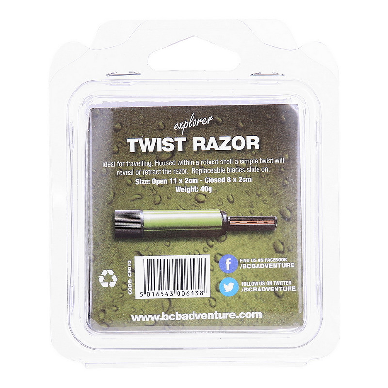 Housed within a robust sheath a simple twist reveals the blade. Just twist the base to reveal the razor.