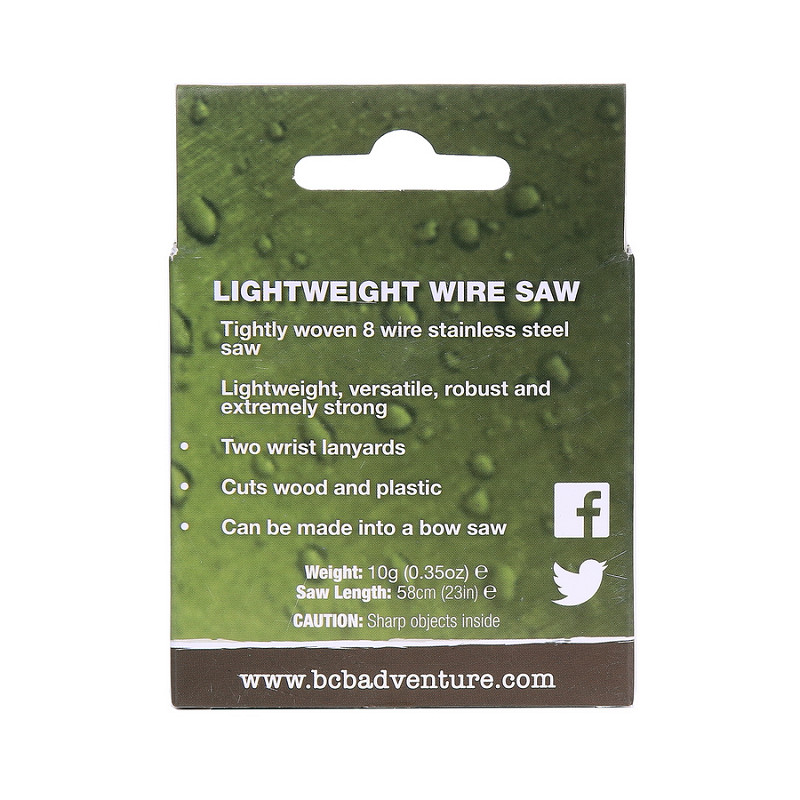 The BCB popular patented wire saw just got better. The tightly woven (8 wire) stainless steel saw now offers increased life span and reduced weight. With the addition of wrist loops they can now be used more comfortably and for longer in more demanding conditions. The original and still the best wire saw |