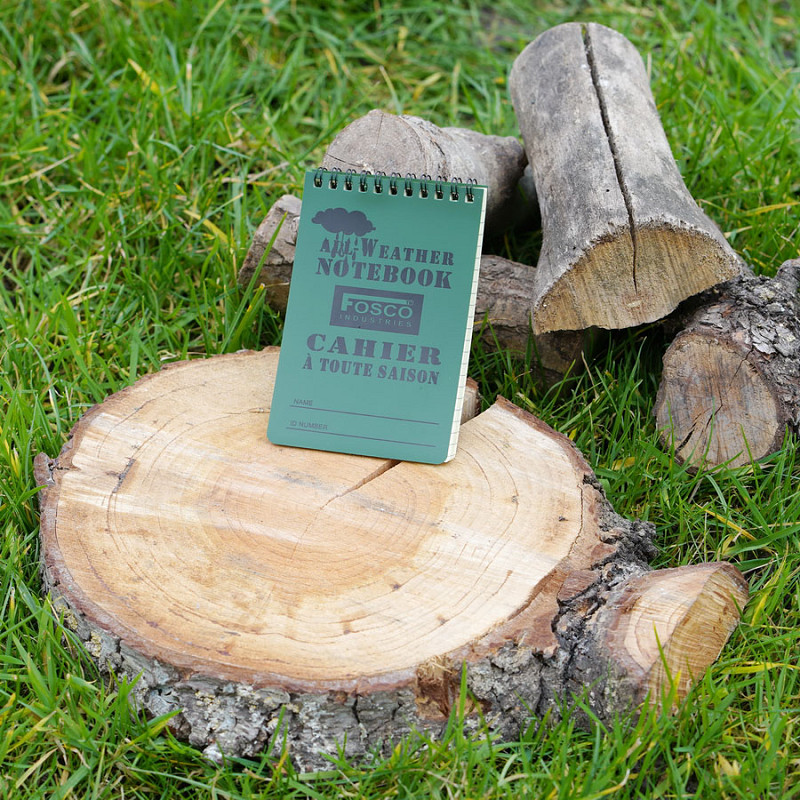 This durable and waterproof notebook is an essential piece of equipment during outdoor activities.