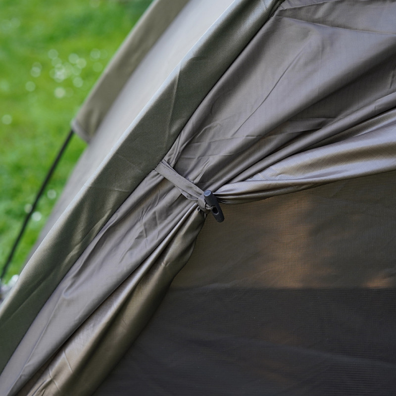 Another feature of this tent are the extended flaps which reach groundlevel so you can store behind it your luggage or other items away from wind or rain.