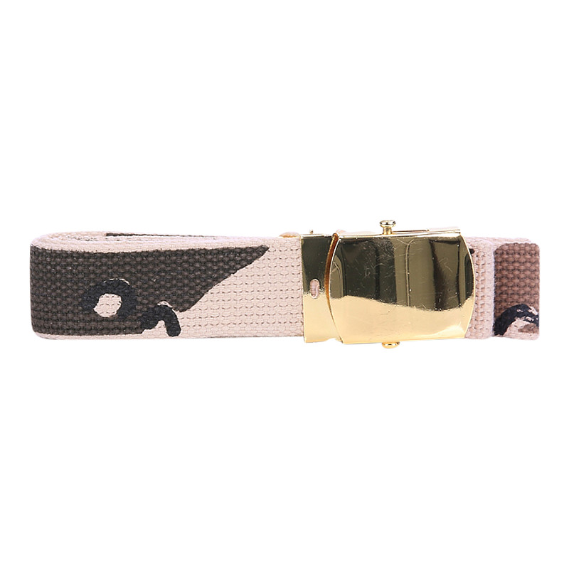 Web Belt made of 100% cotton/canvas with a gold/brass buckle.