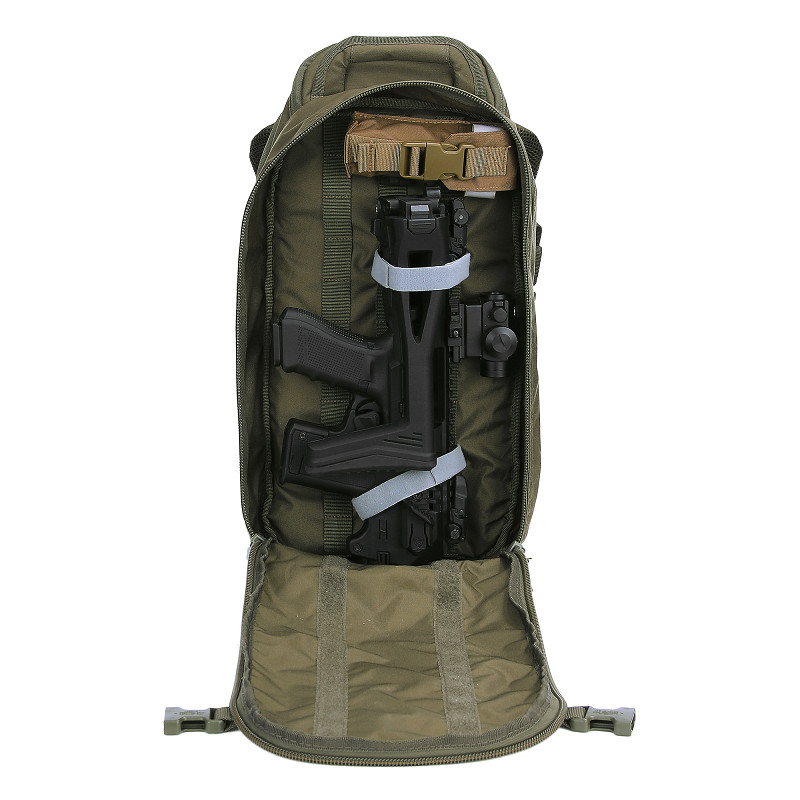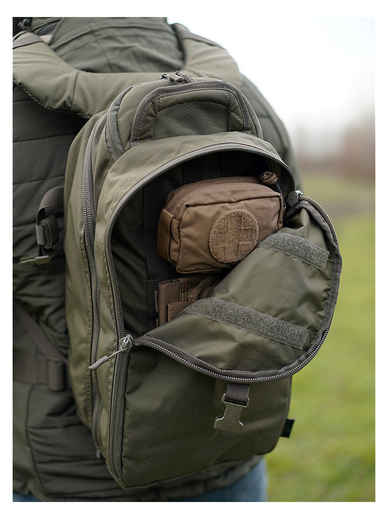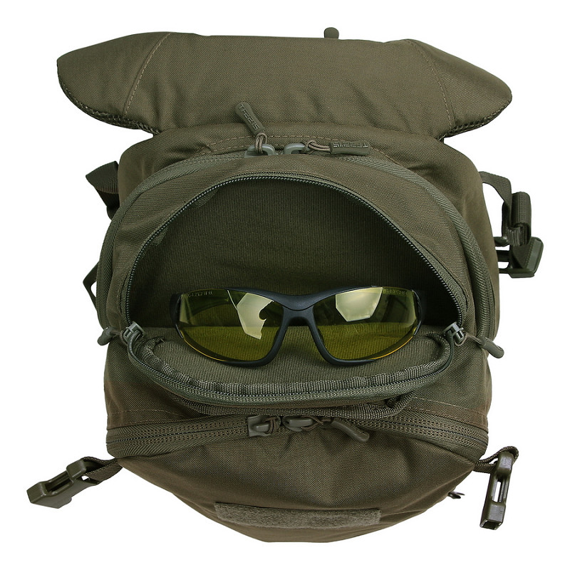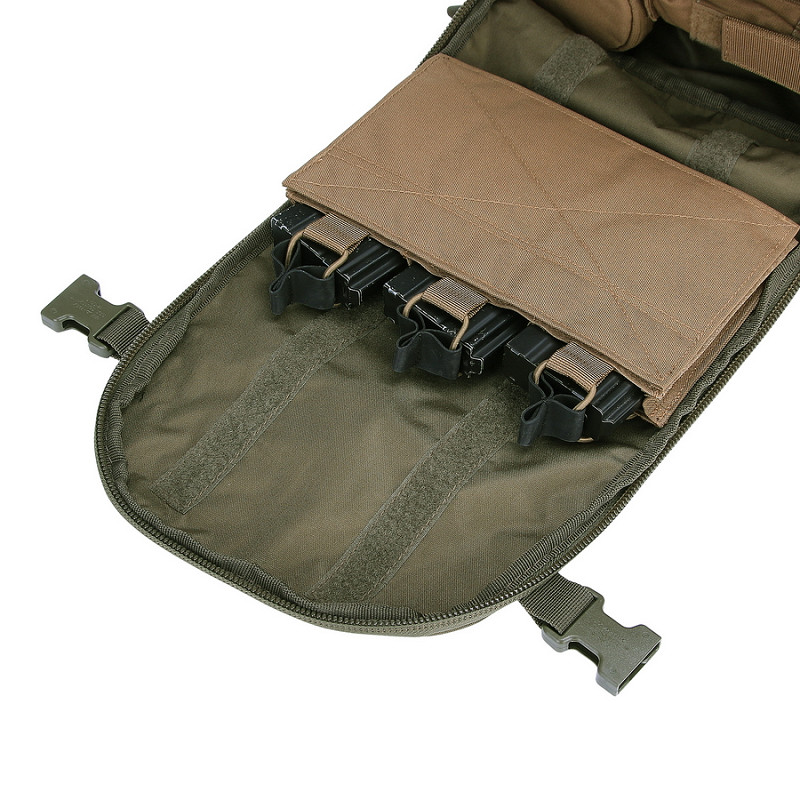 - Front pocket has MOLLE strap on the inside to attach different pouches