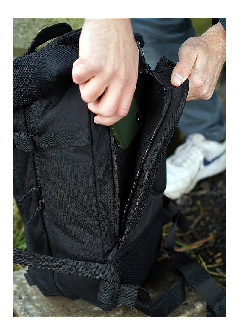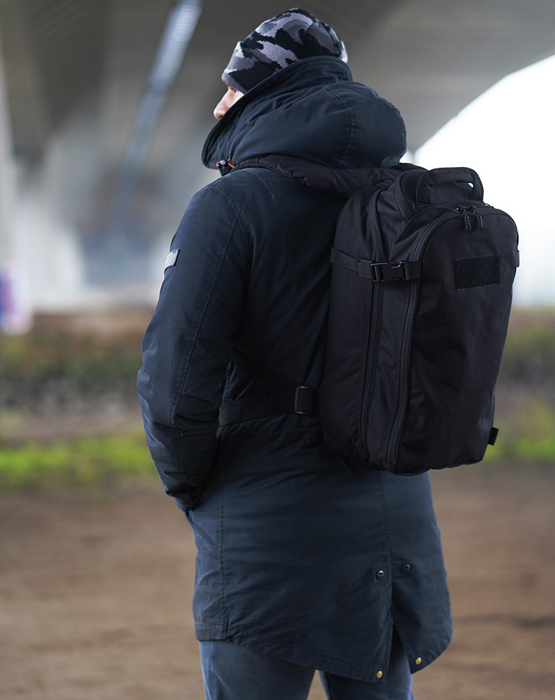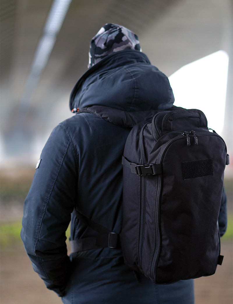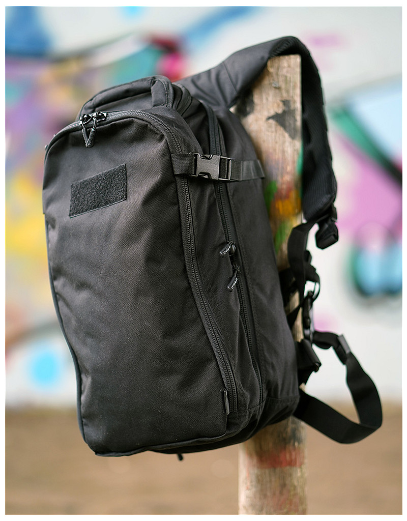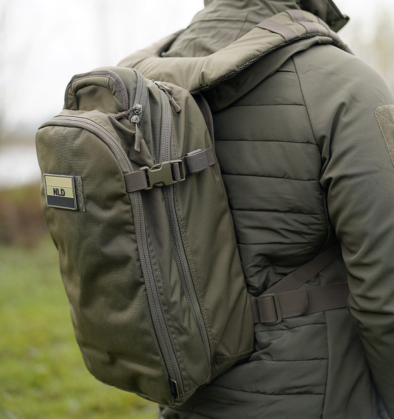 This bag is very comfortable due the sturdy molded backpanel and the ergonomically padded shoulder straps that are fully adjustable. The bag is made of premium materials; the fabric is Cordura® 500DEN and the backpack is equipped with high-quality YKK® zippers and Duraflex® buckles.