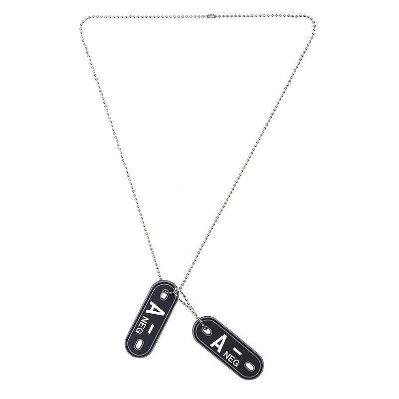 Este conjunto de etiquetas para perros del tipo de sangre es útil para mostrar su tipo de sangre. Fabricada en PVC 100%, unida a una cadena metálica. La parte posterior de la placa de identificación de PVC también tiene un cierre de velcro, por lo que también puede utilizarse como parche. Las letras también son "fosforescentes" y brillan en la oscuridad.