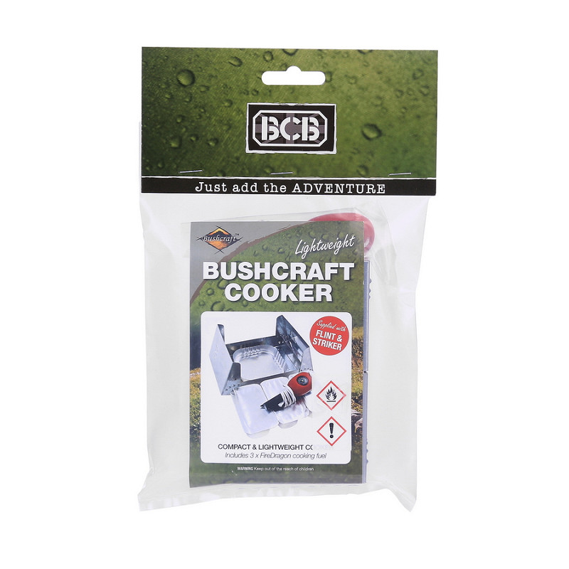 Una estufa plegable compacta y ligera. Incluye 3 bloques de combustible FireDragon para cocinar con pedernal y leña.