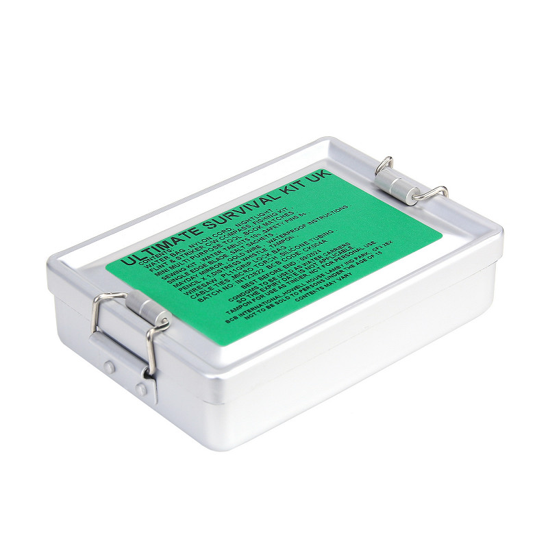 Este "Ultimate Survival Kit" está empaquetado en la ligera mini lata de medir de BCB, que tiene una junta de goma y sellos antivuelco para que sea impermeable cuando se cierre.