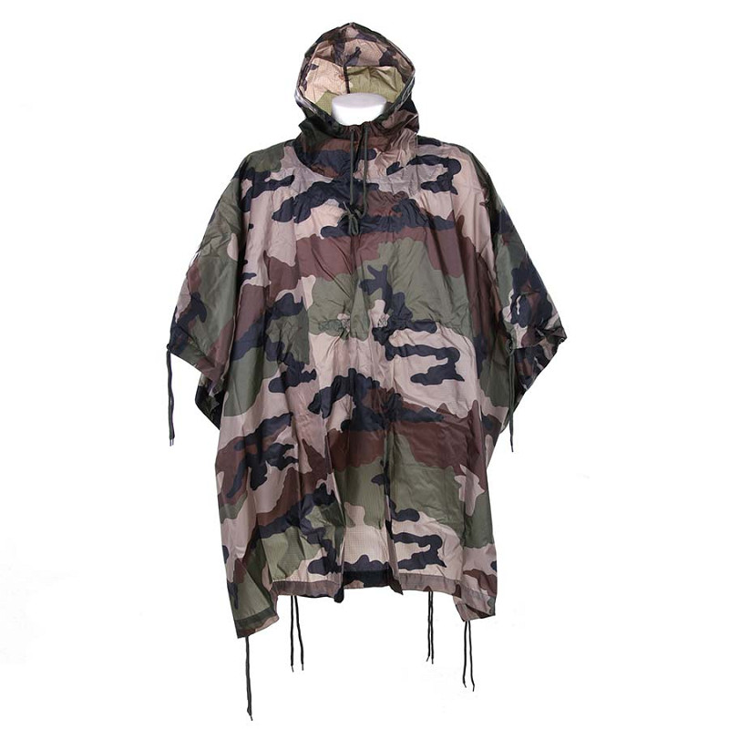 Dotato di laccio regolabile per rendere il cappuccio di perfetta vestibilita. Questo poncho in camo francese è essenziale in condizioni di pioggia e, grazie alla sue dimensione comprimibile di facile trasporto. Ideale per le attività all'aria aperta e viaggi. Caratteristiche: Realizzato in materiale rip-stop, 100% poliestere.