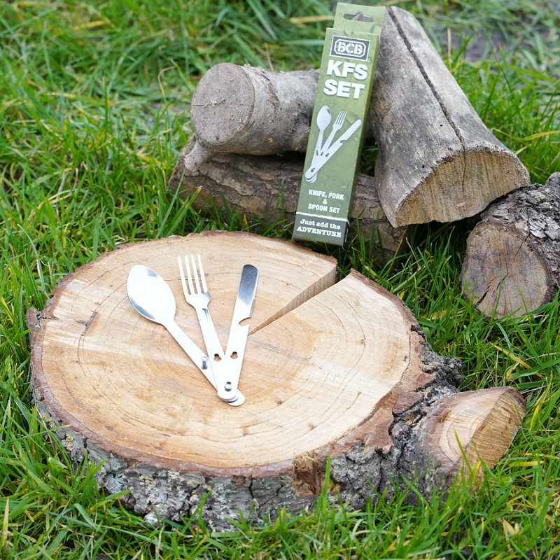Tradizionale set di posate leggero, ideale per il campeggio o attività all'aperto.