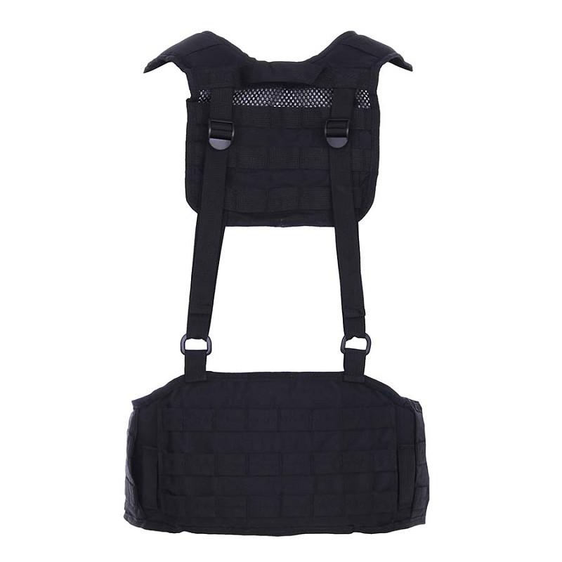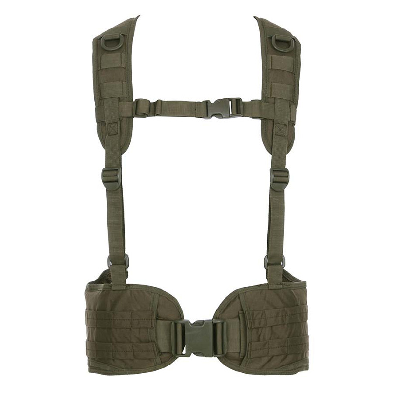 Het harnas heeft als doel om bij een zwaar beladen Tactische riem, de last te verdelen over de schouders. Hierdoor zal de druk op de heupen afnemen en tegelijkertijd blijft de Tactische riem altijd op dezelfde positie. Het harnas is volledig in hoogte te verstellen en heeft gepolsterde schouderbanden voor meer comfort. Tevens heeft het aan elke kant een D-ring voor het bevestigen van allerlei accessoires of het doorvoeren van communicatie-kabels of drinkslang.