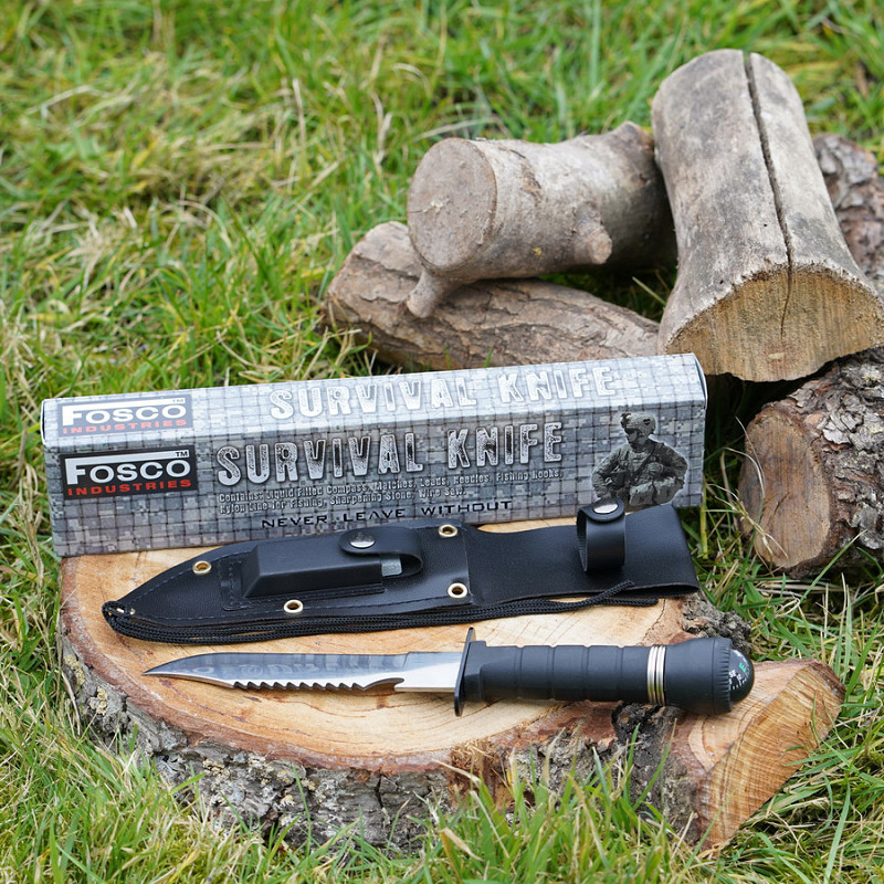 Dit survival mes is volledig vervaardigd uit metaal en wordt geleverd met een nylon holster. In het handvat bevinden zich diverse survivalattributen. Het handvat is voorzien van een kompas. Daarnaast wordt een wetsteen meegeleverd voor het slijpen van het lemmet.