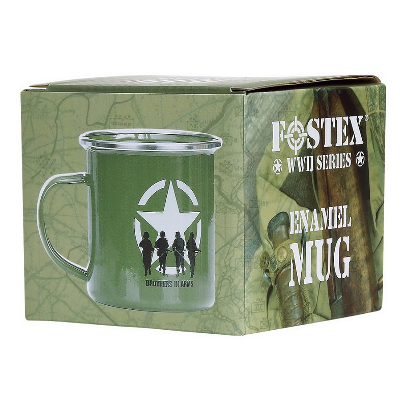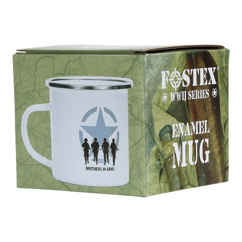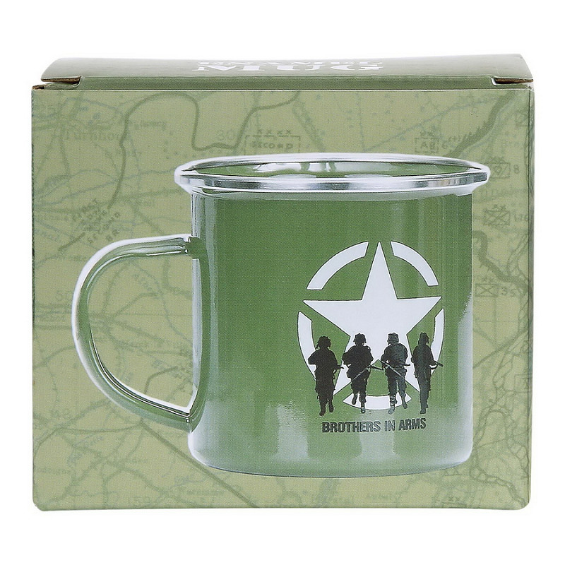 Emaille mok met Brothers in Arms print. De mok is gemaakt van 100% emaille.
