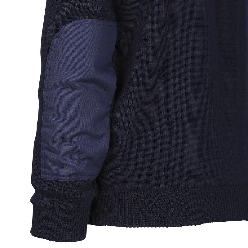 Deze trui heeft epauletten op de schouders. Door de 100% wol is dit een erg fijne trui om in de buitenlucht mee te werken.