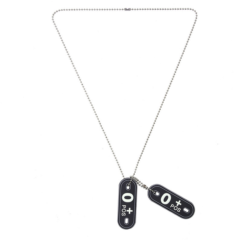 Ten zestaw nieśmiertelników z grupą krwi jest przydatny do pokazania Twojej grupy krwi. Wykonany w 100% z PVC, przymocowany do metalowego łańcuszka. Tył nieśmiertelnika z PVC jest również wyposażony w rzep, dzięki czemu można go również używać jako naszywki. Litery świecą również w ciemności i świecą w ciemności.